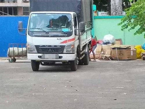 Xe tải vào BV Phạm Ngọc Thạch chở chai nhựa do bà Võ Thị Ngọc thu mua. Ảnh: TRẦN NGỌC
