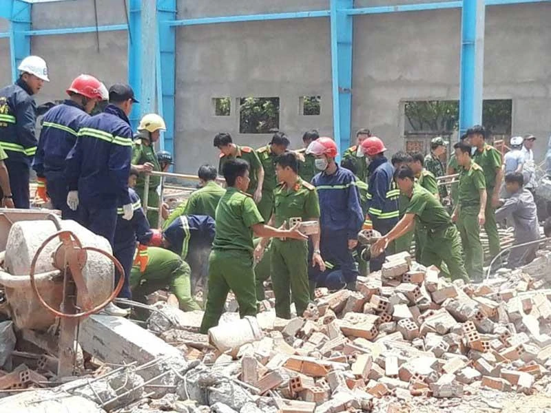 Còn ông Võ Phi Phát (công nhân xây dựng công trình) kể thời điểm đó ông đang làm ở khu vực phía sau thì nghe tiếng sập đùng đùng rất lớn. Khi chạy ra thì thấy bức tường đã sập, đè lên rất nhiều người. Cũng theo ông Phát, bức tường có chiều cao hơn 10 m, dài hơn 30 m, được xây dựng trước Tết, không có dấu hiệu nứt. Sau khi sự việc xảy ra, ông và các công nhân lo lắng bức tường liền kề sẽ tiếp tục sập nên đơn vị thi công đã cho ngưng thi công.