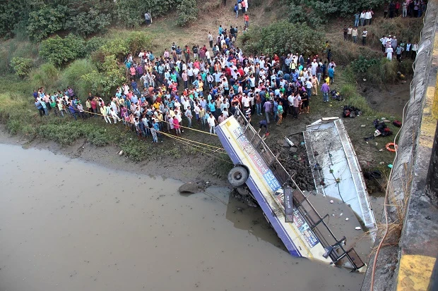Vụ tai nạn xảy ra vào chiều 5-2 khi tài xế mất kiểm soát trong lúc cố tránh một người đi xe đạp. Với tốc độ khá cao vào thời điểm đó, chiếc xe buýt đã trượt khỏi đường và lao xuống con sông Purna thuộc quận Navsari, bang Gujarat, Ấn Độ.
