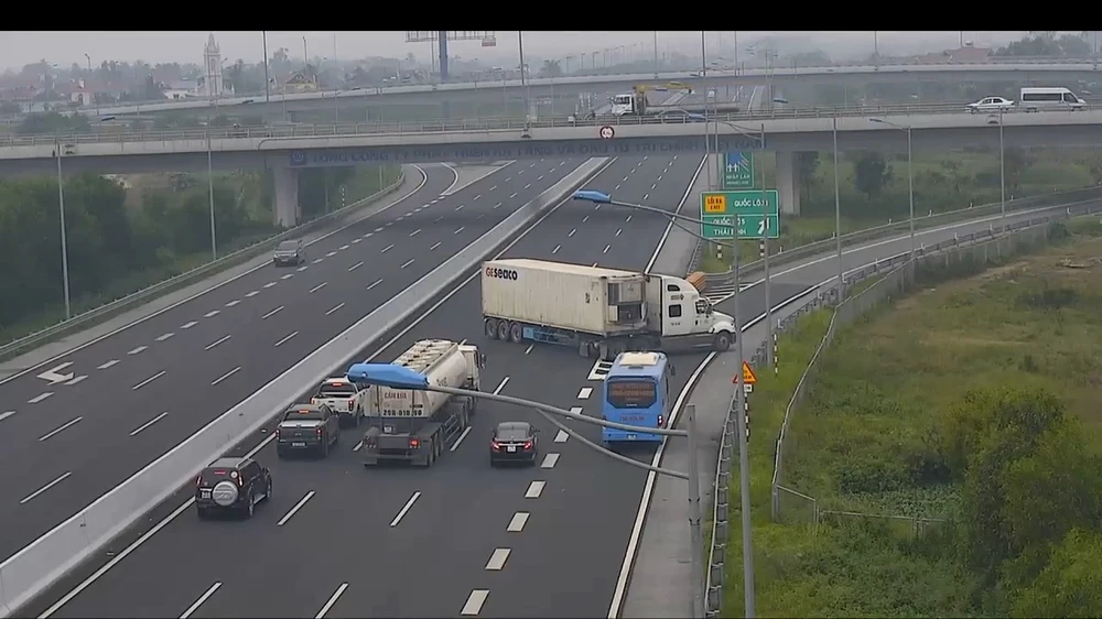 Toàn bộ hình ảnh vi phạm của xe container đã được thiết bị giao thông thông minh của Công ty TNHH MTV Quản lý và Khai thác đường ô tô cao tốc Hà Nội-Hải Phòng ghi lại.