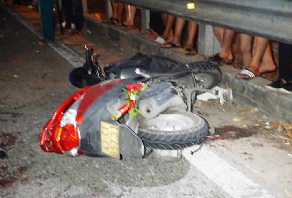Chưa dừng lại, xe container tiếp tục lao tới húc văng xe máy 43C1 053.31 của một gia đình bốn người (vợ chồng và hai con) chạy hướng ngược lại (thuộc phường Hòa An, quận Cẩm Lệ).