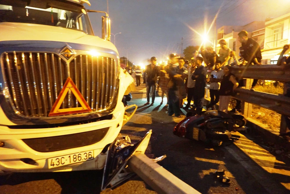 Theo thông tin ban đầu, khuya 14-7, xe container 43C 186.36 do người đàn ông cầm lái chạy trên đường Trường Chinh hướng từ cầu vượt Hòa Cầm đi nút giao thông Ngã Ba Huế.