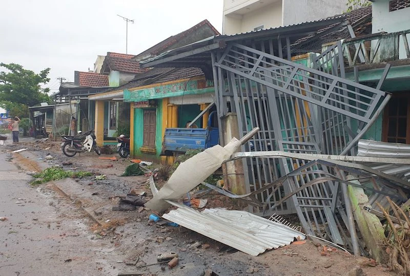 Nhiều nhà bị hư hỏng một phần, rất may không có thiệt hại về người. Ảnh: TN