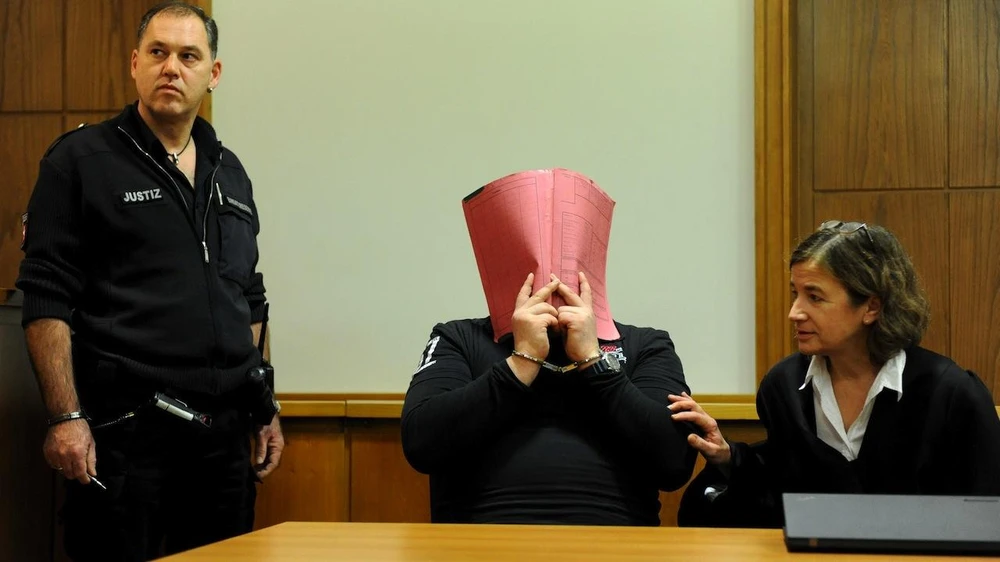 Niels Hoegel luôn che mặt tại tòa. Ảnh: AFP