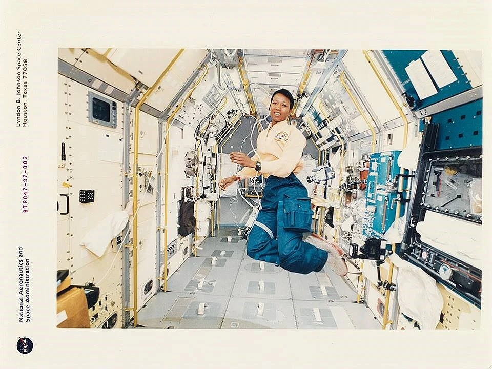Phi hành gia Mae C.Jemision lơ lửng trong tàu vũ trụ Endeavor năm 1992. Ảnh: NASA.