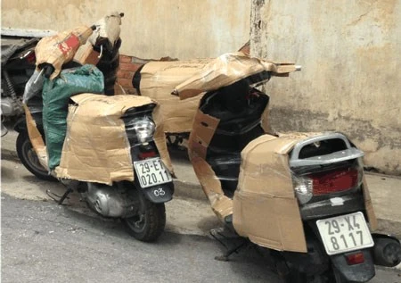 Bạn nên tháo 2 gương ra cất vào balo để tránh bị vỡ cũng như chuẩn bị một số mảnh vải (có thể sử dụng quần áo cũ, giẻ lau) để sau khi đưa xe máy vào cốp dưới gầm ô tô sử dụng để bọc, lót xung quanh một số vị trí dễ xước sơn như : phần yếm, phần đèn phía đầu xe, phần nhựa ở bên hông đối với một số xe to ....
