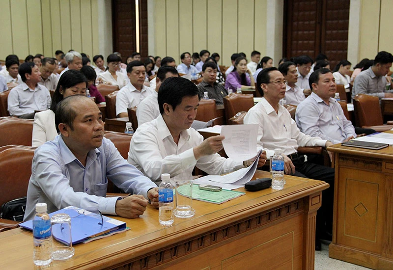 Đại diện Sở Tư pháp, ông Trần Văn Bảy báo cáo kết quả qua năm năm thực hiện, chương trình đã đạt được những kết quả tích cực, góp phần hoàn thiện, nâng cao hiệu quả công tác xây dựng VBQPPL trên địa bàn TP.