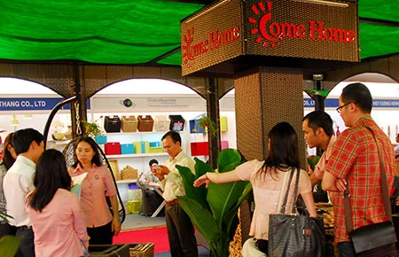 Dự báo tỉ lệ các DN nội địa năm nay sẽ xuất khẩu cao hơn năm ngoái. Trong ảnh: Các đối tác tìm thông tin đặt hàng thủ công mỹ nghệ tại hội chợ hàng xuất khẩu ở TP.HCM. Ảnh: HTD