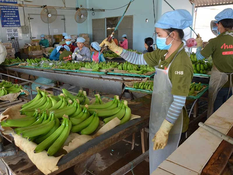 Vai trò của kinh tế tư nhân ngày càng được nhìn nhận. Trong ảnh: Quy trình khép kín từ trồng đến sơ chế, xử lý, đóng gói chuối xuất khẩu sang Nhật của Công ty Huy Long An. Ảnh: QUANG HUY
