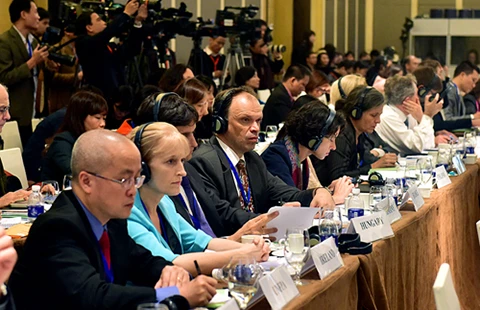 Các đại biểu đến từ nhiều nước trên thế giới tham gia Diễn đàn đối tác phát triển Việt Nam. Ảnh: N.BẮC