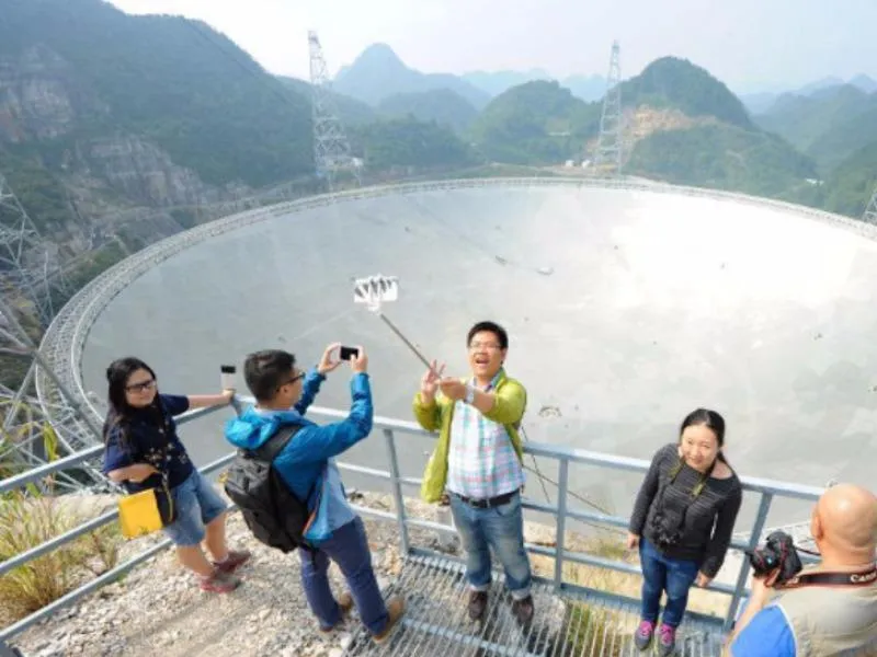 Hình ảnh du khách selfie với chiếc kính thiên văn lớn nhất thế giới. Ảnh: Handout