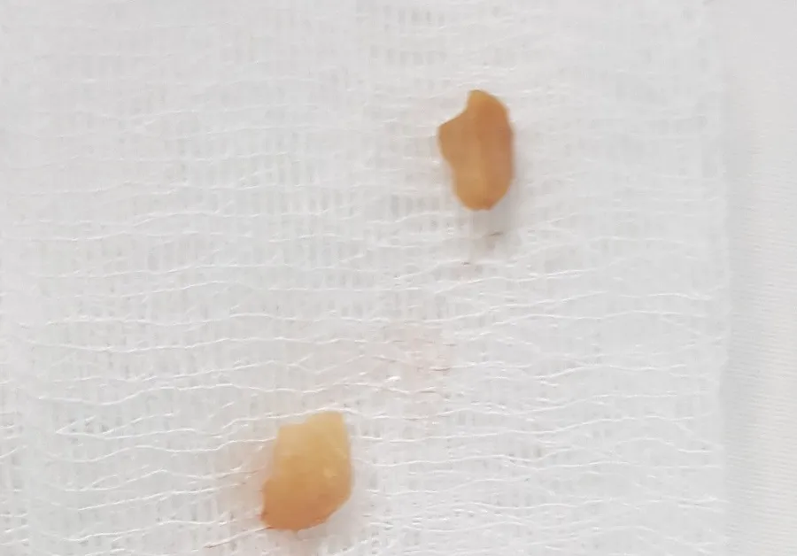 Hai mảnh đậu phộng được các bác sĩ lấy ra ngoài.