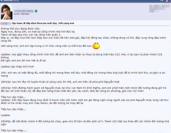 Kích động hơn, có bạn còn nói: “có dịp mình được sử dụng… dao rọc giấy cầm theo lâu nay”. Bạn Huynhtran: “xin lỗi chứ, phải vào người yêu mình thì mấy người này ra đi”.