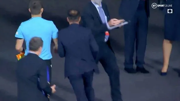 ... Simeone phớt lờ lao thẳng vào đường hầm. ẢNH: BT SPORTS