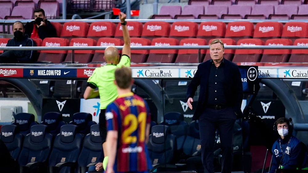 Chiếc thẻ đỏ này khiến Koeman bị cấm chỉ đạo hai trận lúc "dầu sôi lửa bỏng". Ảnh: Getty