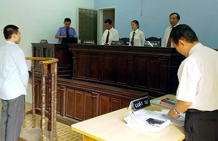 Quang cảnh phiên xử bị cáo Phạm Văn Tho ngày 11-6 tại TAND TP Tây Ninh. Ảnh: T.TÙNG