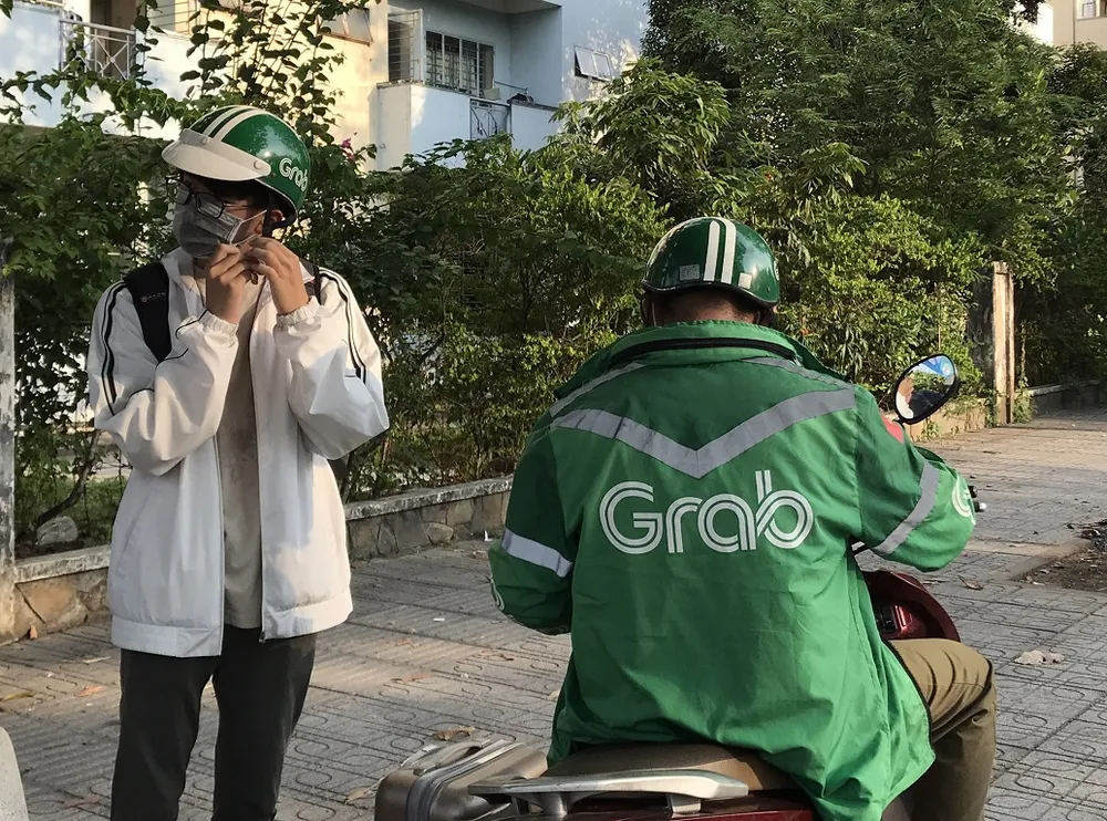 Nhiều sinh viên chọn đi Grap đến bến xe để tránh tiếp xúc với nhiều người. Ảnh: KHÁNH CHI