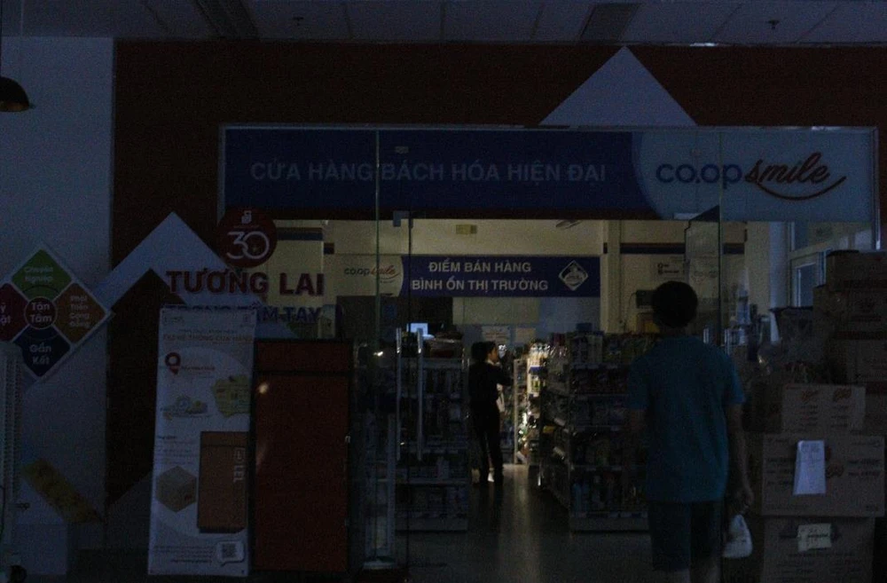 Sinh viên phải dùng đèn điện thoại để thắp sáng trong cửa hàng.