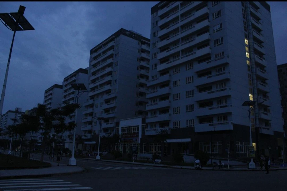 Các tòa nhà của KTX khu B bị cúp điện hoàn toàn.
