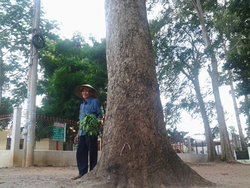 Cụ Chín Nhu (84 tuổi), làm thủ từ đình Phước Tân đang đứng cạnh bên một “cụ” cây dầu khoảng 3 vòng tay người lớn ôm mới hết. Cụ Chín Nhu nói rằng ngay từ thời ông sơ đã thấy xuất hiện “cụ” cây dầu này đứng sừng sững đầu xóm Miễu.