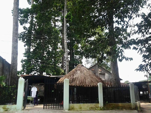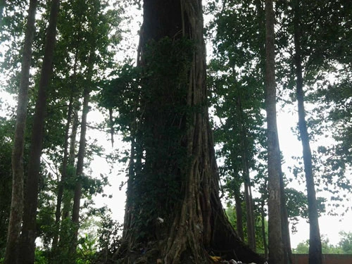 Bà Nguyễn Thị Liễu, bán quán giải khát trước cổng đình chỉ vào một “cụ” cây dầu có gốc hình thù kỳ lạ, rồi kể: “cụ” dầu này năm nào cũng bị sét đánh cháy đen thui, vậy mà không hiểu sao vẫn sống khỏe và đứng sừng sững để chứng kiến biết bao biến thiên của cuộc đời.