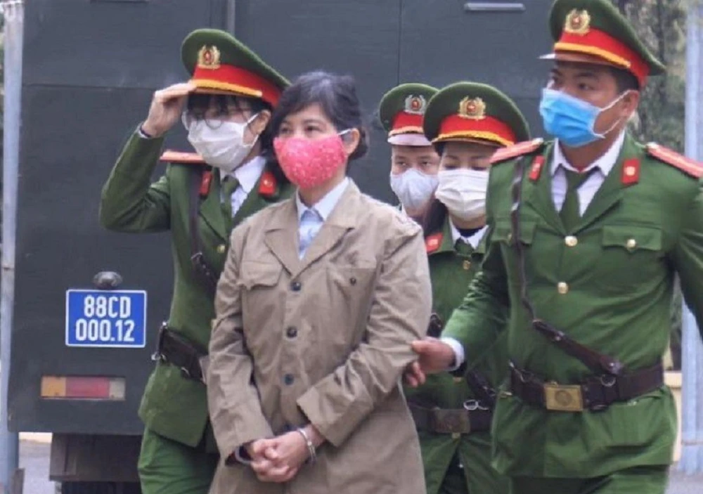 Nguyễn Thị Kim Anh cùng ba cựu cán bộ thanh tra thuộc Thanh tra Bộ Xây dựng hầu tòa trong vụ án vòi tiền tỉ của doanh nghiệp ở Vĩnh Phúc. Ảnh: TP