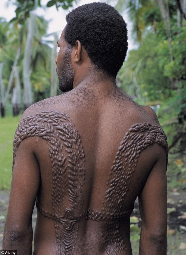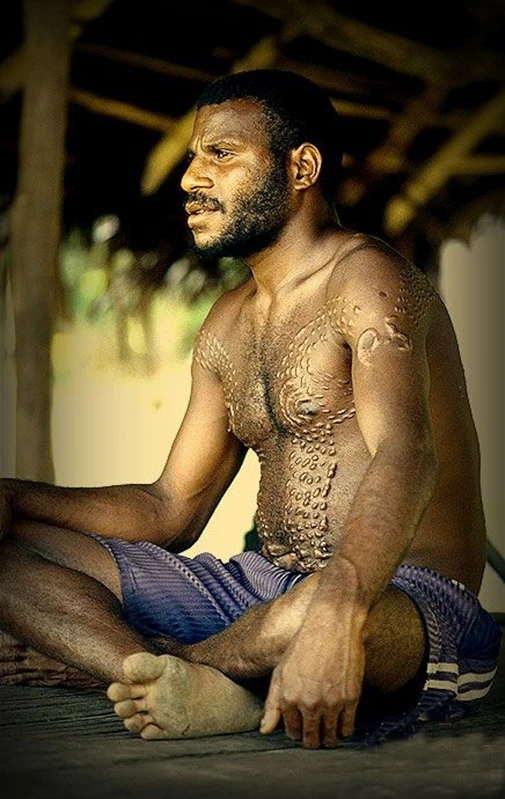 Bằng cách này, những “họa tiết” trên cơ thể càng dài thì người đàn ông càng chín chắn, trưởng thành. Người nào càng nhiều vết sẹo càng may mắn có được sức khỏe, mạnh mẽ và cứng rắn như cá sấu.