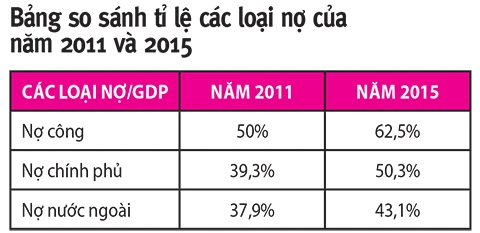 Theo báo cáo này, nhiệm vụ thu ngân sách nhà nước (NSNN) hằng năm đều vượt dự toán Quốc hội đề ra. Thế nhưng tổng chi NSNN giai đoạn 2011-2015 bằng khoảng hai lần so với giai đoạn 2006-2010, trong đó chi trả nợ bằng khoảng 1,83 lần, chi thường xuyên bằng khoảng 2,53 lần. Đáng chú ý, chi thường xuyên chiếm khoảng 64%-65% trong tổng chi ngân sách nhà nước giai đoạn 2011-2015.
