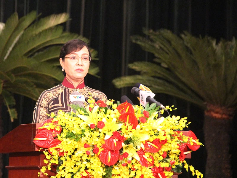 Bà Nguyễn Thị Quyết Tâm, Chủ tịch HĐND TP.HCM, tại buổi khai mạc kỳ họp ngày 4-12. Ảnh: TL