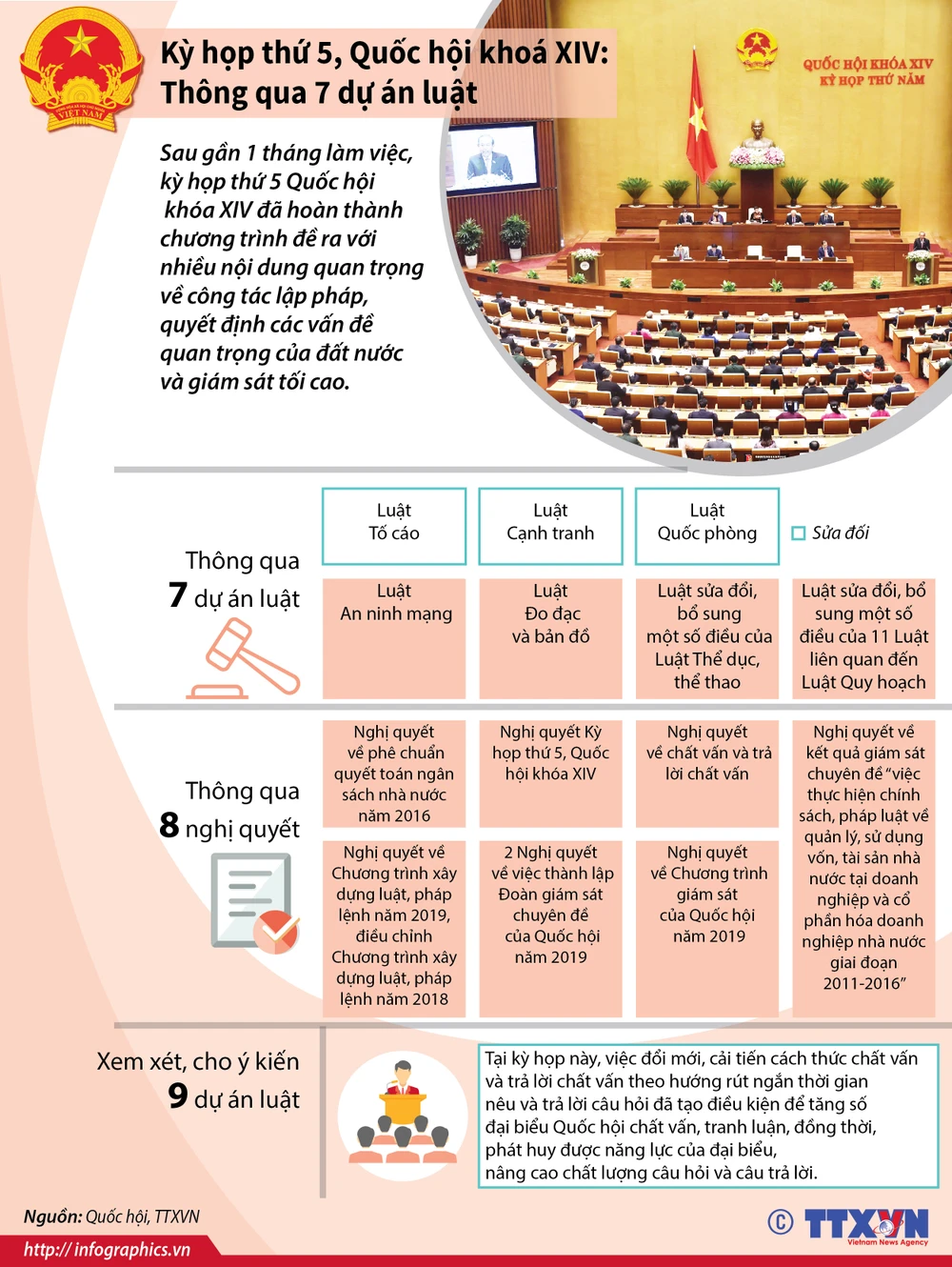 Kỳ họp thứ 5, Quốc hội khóa XIV: Thông qua 7 dự án luật