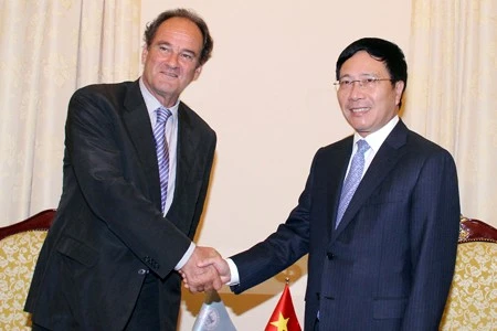 Phó Thủ tướng, Bộ trưởng Ngoại giao Phạm Bình Minh và Tổng Thư ký PCA Hugo Hans Siblesz. (Ảnh: VGP/Hải Minh)