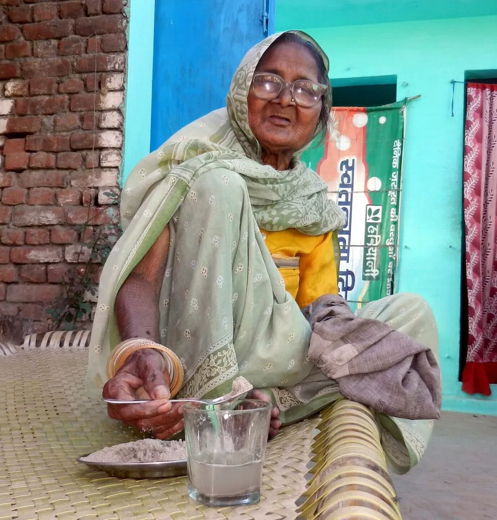 Họ cho biết rằng họ đã chứng kiến người đàn bà này từ vùng Kajri Noorpur ăn 4 đĩa cát một ngày và nhờ vào thói quen kì lạ này bà chưa lần nào phải đi khám bác sĩ hay thấy đói bụng.
