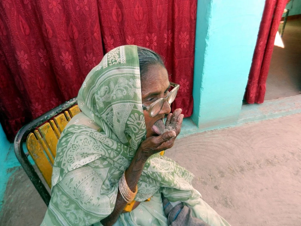 Một người dân trong làng cho hay: “Bà ấy nói thằng bà ấy ăn khoảng 1kg cát mỗi ngày và bà ấy hoàn toàn khỏe mạnh. Bà ấy không hề có bệnh tật gì cả”.
