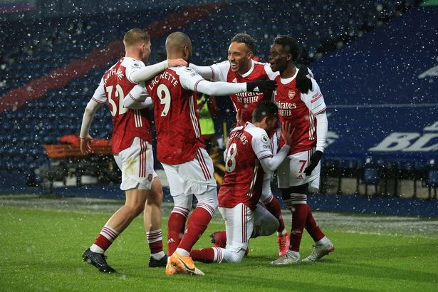 Các cầu thủ Arsenal không được ăn mừng bàn thắng như thế này trong thời gian tới. ẢNH: GETTY