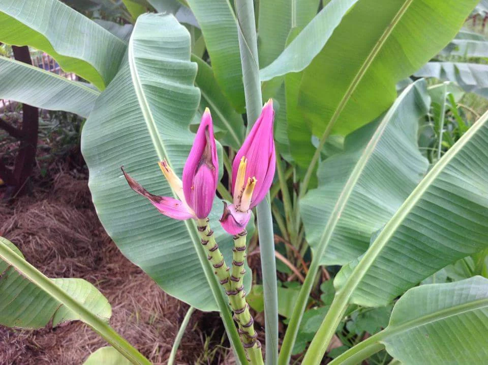 Chủ quán cho biết đây là loại chuối Sen, bông trổ có màu hồng sen rất đẹp. Mỗi cây chỉ có một bông, chưa bao giờ anh thấy một cây chuối trổ hai bông như vậy.