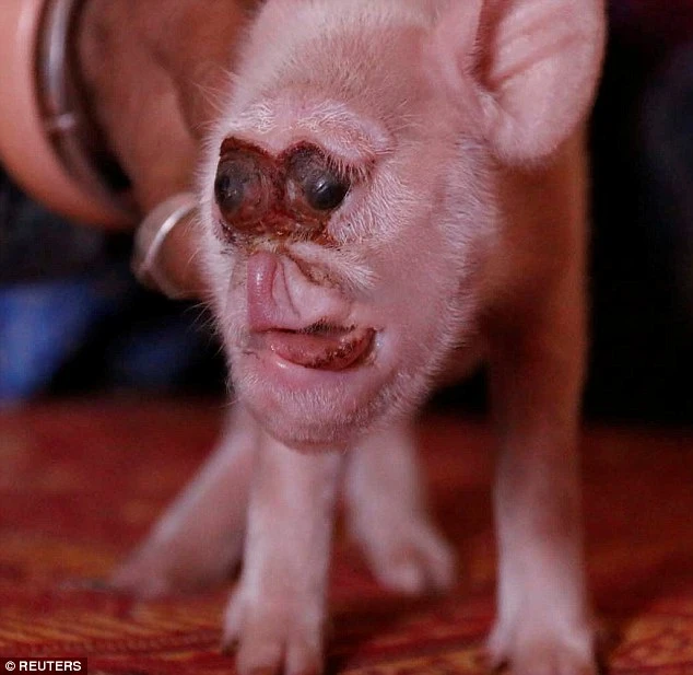 Chú heo được sinh ra với khuôn mặt giống khỉ.