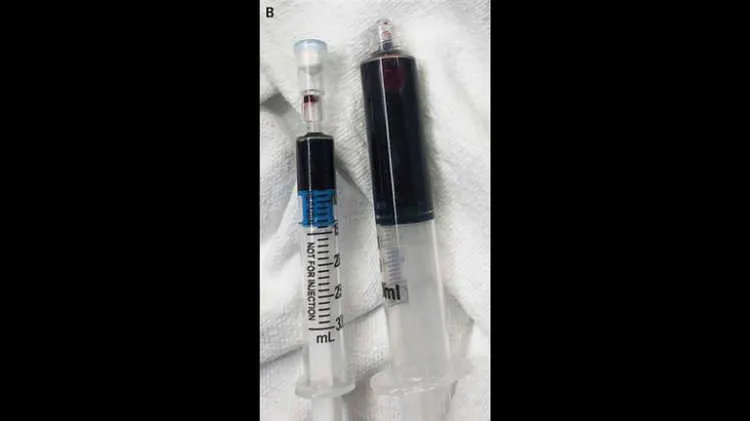 Máu của cô gái chuyển sang màu xanh kỳ lạ sau khi phản ứng với thành phần benzocaine có trong thuốc giảm đau. Ảnh: NEW ENGLAND JOURNAL OF MEDICINE