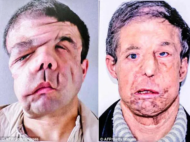 Jérôme Hamon trước và sau ca cấy ghép mặt đầu tiên. Ảnh: AFP