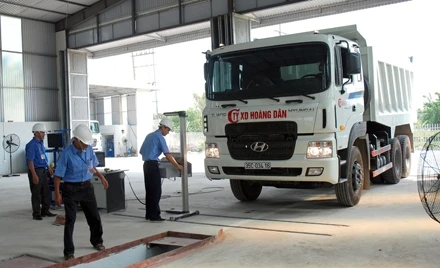 Phương tiện vào đăng kiểm tại trung tâm 35-02D. Ảnh Báo Ninh Bình