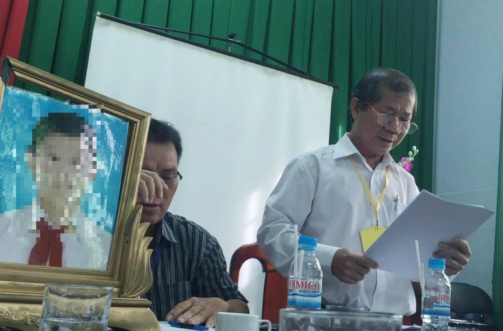 Người nhà mang di ảnh cháu bé đến buổi làm việc với Trung tâm Y tế huyện Phú Giáo. Ảnh: Vũ Hội