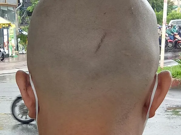 Bà Oanh cho rằng vết rách trên đầu con mình là do hộ lý N. đánh. Ảnh: GĐCC