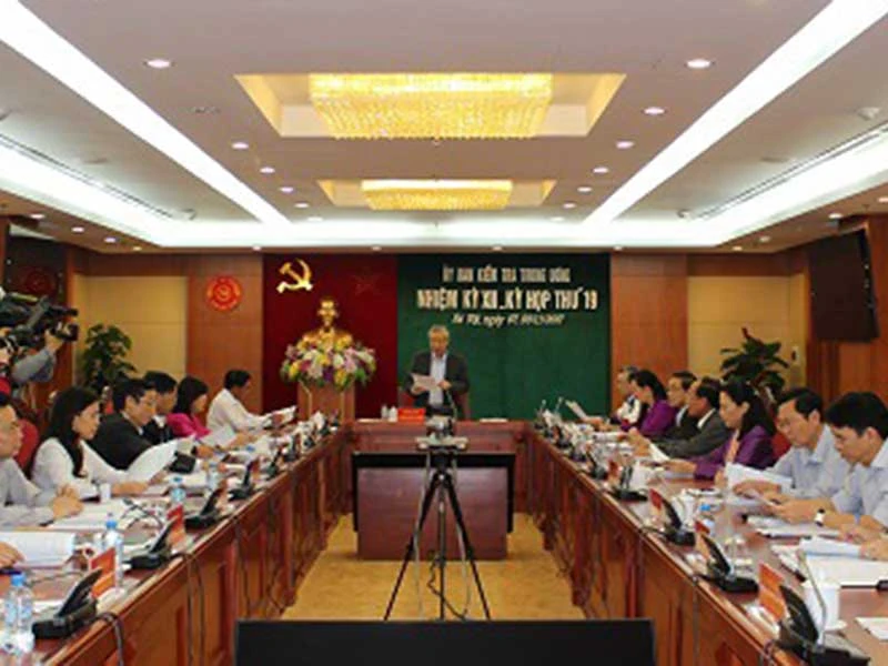 Ông Trần Quốc Vượng, Ủy viên Bộ Chính trị, Bí thư Trung ương Đảng, Chủ nhiệm Ủy ban Kiểm tra Trung ương, chủ trì kỳ họp thứ 19. Ảnh: Web UBKTTƯ