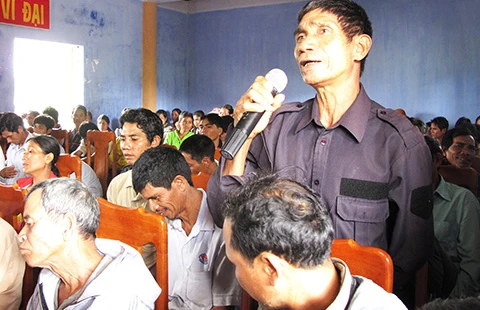 Người dân xã Ea Trol, huyện Sông Hinh (Phú Yên) tố cáo sai phạm của ông Võ Trọng Bình và BQL rừng phòng hộ trong buổi đối thoại với lãnh đạo huyện. Ảnh: TẤN LỘC