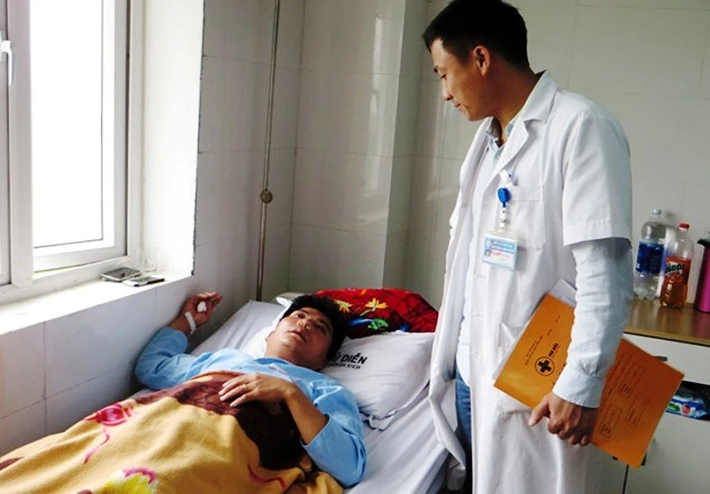 Thầy giáo Đặng Minh Thủy bị người nhà học sinh đánh, phải nằm cấp cứu tại bệnh viện.