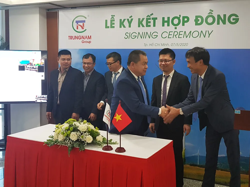 "Trong hai năm qua, chúng tôi chỉ mới làm được 33 trụ điện gió, kế hoạch trong ba năm tới, cần phải dựng thêm 912 trụ nữa. Việc đầu tư mua khối lượng lớn thiết bị cần trục như vậy được xem là kỷ lục hiện nay tại Việt Nam" - ông Nguyễn Tâm Tiến, Tổng giám đốc Trung Nam Group, cho biết trong buổi lễ ký hợp đồng sáng 7-5 với đối tác nước ngoài.