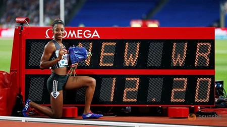 VĐV điền kinh nội dung 100 m rào nữ Mỹ Kendra Harrison vừa phá kỷ lục 100 m rào nữ tại giải điền kinh Diamond League đang diễn ra tại London.