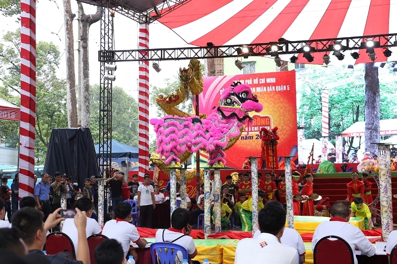 Tối 28-12, tại Công viên Văn Lang (quận 5) đã diễn ra lễ khai mạc Liên hoan lân sư rồng TP.HCM lần 2 năm 2018. Năm nay, sự kiện thu hút 25 đoàn, đội lân sư rồng đến từ TP.HCM và các tỉnh như Đồng Nai, Long An, Vũng Tàu. Các đơn vị Hào Dũng Đường, Tinh Anh Đường, Hải Nam Liên Hữu Đường và Hùng Dũng Đường đã đem đến những khoảnh khắc trình diễn lân mai hoa thung đầy sôi động và vô cùng hấp dẫn.
