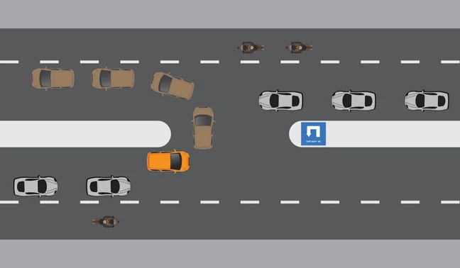 Quay xe tại đường có dải phân cách cứng: Tương tự như tại giao lộ, bạn cũng cần bật đèn tín hiệu rồi áp sát làn ngoài cùng trước khi tới điểm quay đầu sao ho không còn xe nào có ý định vượt trái xe bạn. Tuy nhiên, khác với tại ngã tư, nơi các phương tiện lưu thông luôn phải giảm tốc độ và chú ý quan sát hơn trên đường thẳng, đường có dải phân cách cứng luôn có tốc độ lưu thông khá cao của các phương tiện.