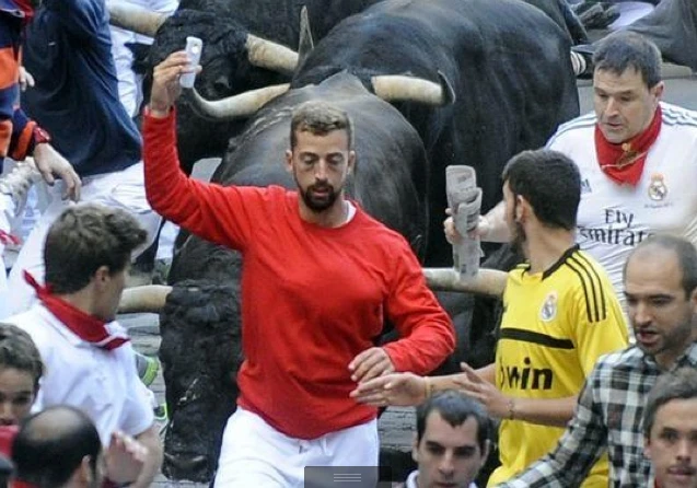 5: Tự sướng kiểu Tây Ban Nha - Vẫn tranh thủ pose ảnh dù bị bò tót đuổi sát nút.