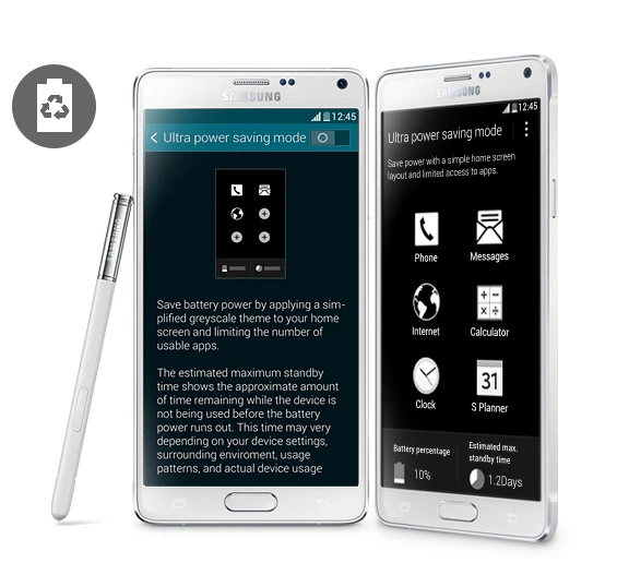 Trang bị pin 3.220mAh, Note 4 có thời gian sử dụng lâu hơi iPhone 6 Plus dùng pin 2.915mAh. Trong cùng điều kiện sử dụng, phablet Samsung sống sót sau 8 tiếng 43 phút còn iPhone 6 Plus là 6 tiếng 32 phút. Chưa kể, Samsung có chế độ siêu tiết kiệm pin Ultra Power Saving ưu việt, công nghệ sạc pin nhanh hơn và có thể thay pin nếu muốn.